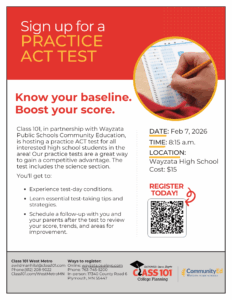 Take the first step toward higher ACT scores! We’re offering a community ACT practice test that simulates real testing conditions. Students will receive a detailed score report highlighting strengths and areas for improvement with a scheduled one-on-one follow-up appointment within two weeks after the test. This is a stress-free way to experience the ACT, discover where you stand, and create a plan for success. Space is limited—reserve your spot today!